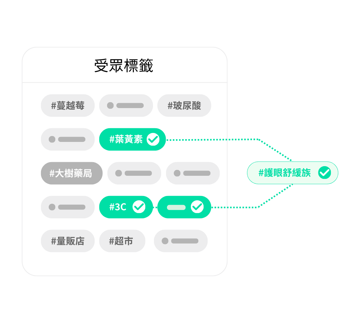 運用 AI 智慧分析與貼標,深度掌握 900 萬用戶全通路消費輪廓,讓以品牌能進階以「通路類型」、「通路」、「品類」等細節精準圈選受眾。